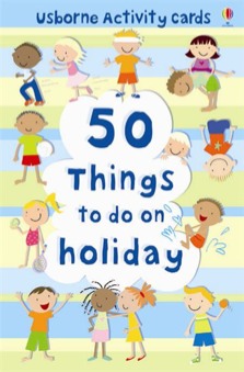 Colourful box of 50 cards each showing a fun activity or game to keep children entertained on holiday.